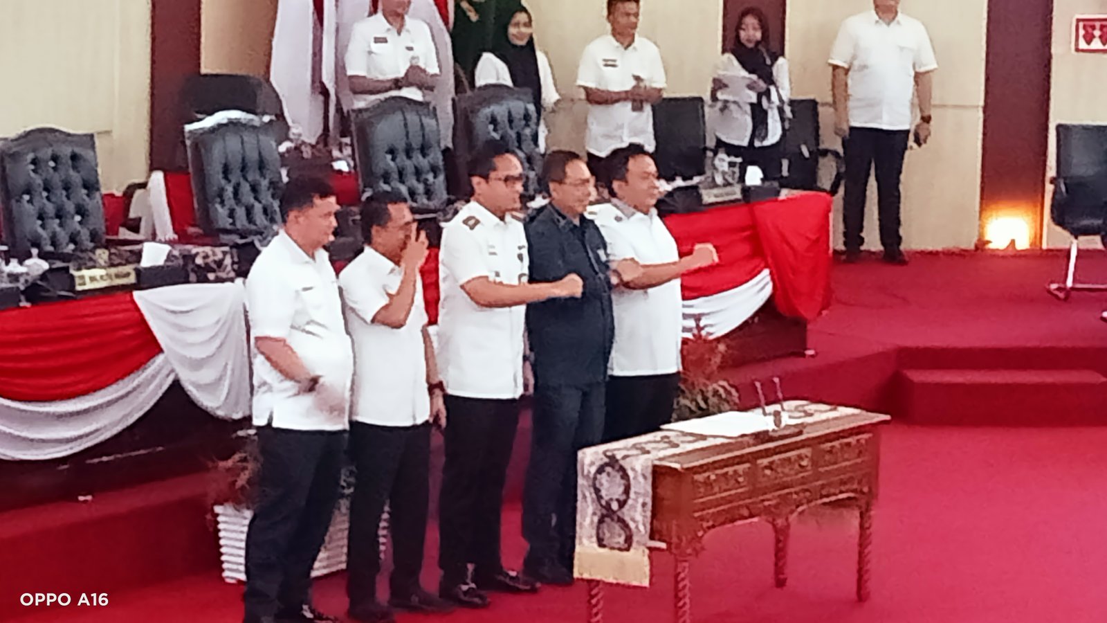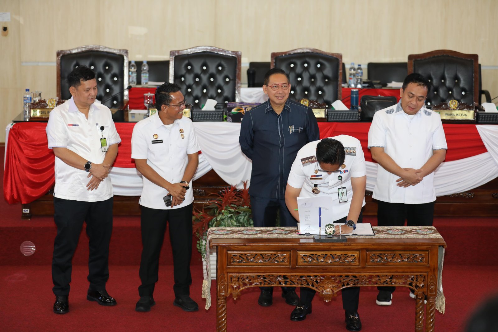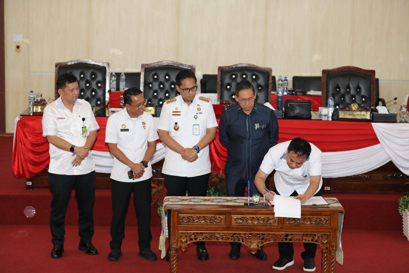 Kemudian rapat dilanjutkan dengan penyampaian pandangan fraksi dimana seluruh fraksi menyetujui dan menerima Rancangan Perda APBD 2026, disahkan menjadi Perda APBD 2026.