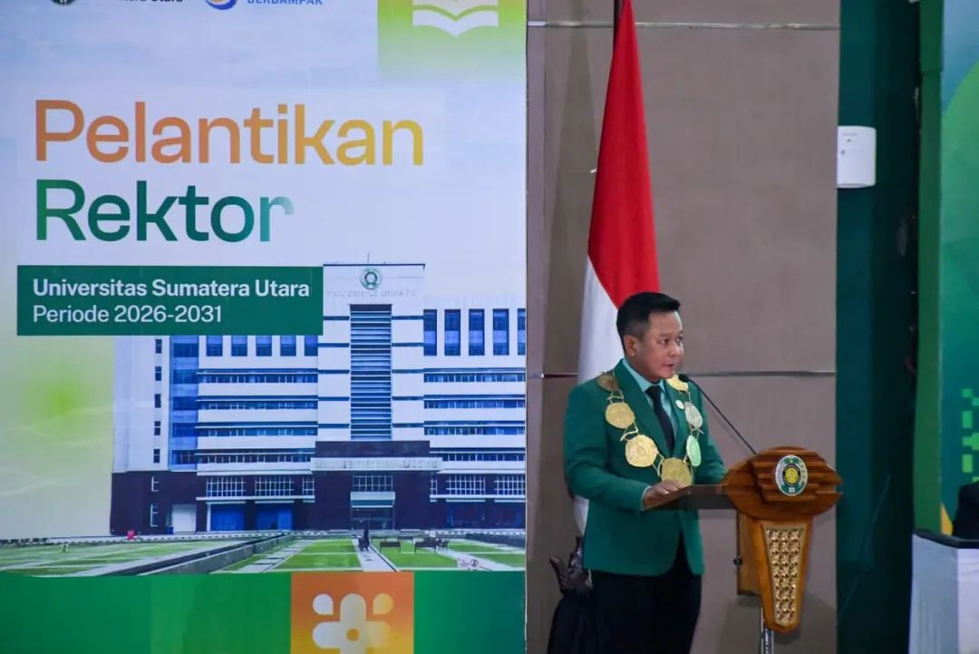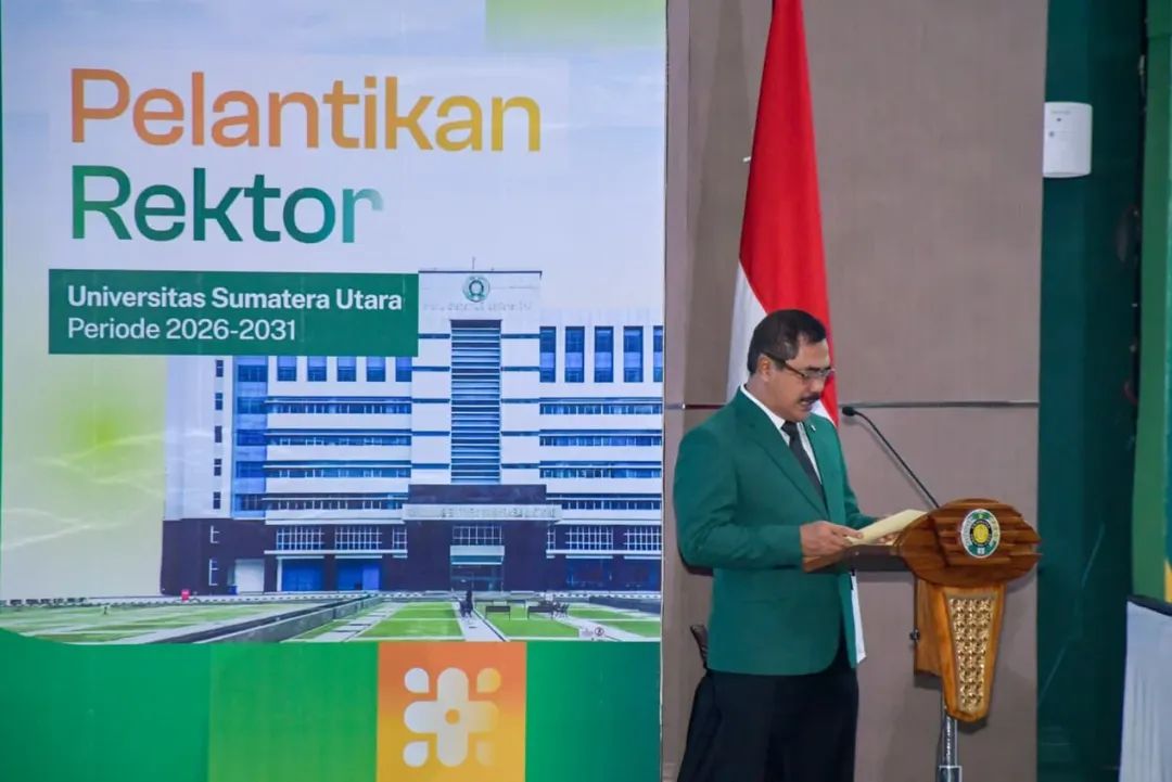 Baca Juga:Prof Dr Muryanto Amin, S.Sos, M.Si kembali dipercaya memimpin Universitas Sumatera Utara (USU) sebagai Rektor periode 2026–2031. Akademisi ilmu politik tersebut resmi dilantik dan diambil sumpah jabatannya oleh Ketua Majelis Wali Amanat (MWA) USU, Jenderal Polisi (Purn.) Agus Andrianto, di Auditorium USU, Rabu (28/1/2026).