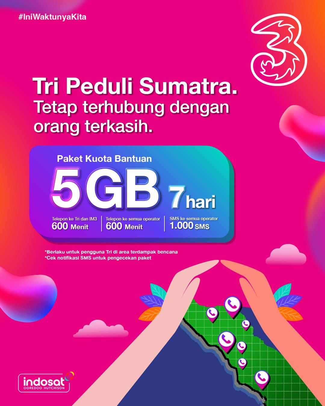 Indosat Ooredoo Hutchison (Indosat atau IOH) menyalurkan paket khusus bencana kepada ratusan ribu pelanggan IM3 dan Tri yang terdampak bencana banjir dan longsor di wilayah Aceh, Sumatra Utara, dan Sumatra Barat. Langkah ini merupakan bagian dari komitmen Indosat untuk memastikan konektivitas masyarakat tetap terjaga selama masa tanggap darurat.