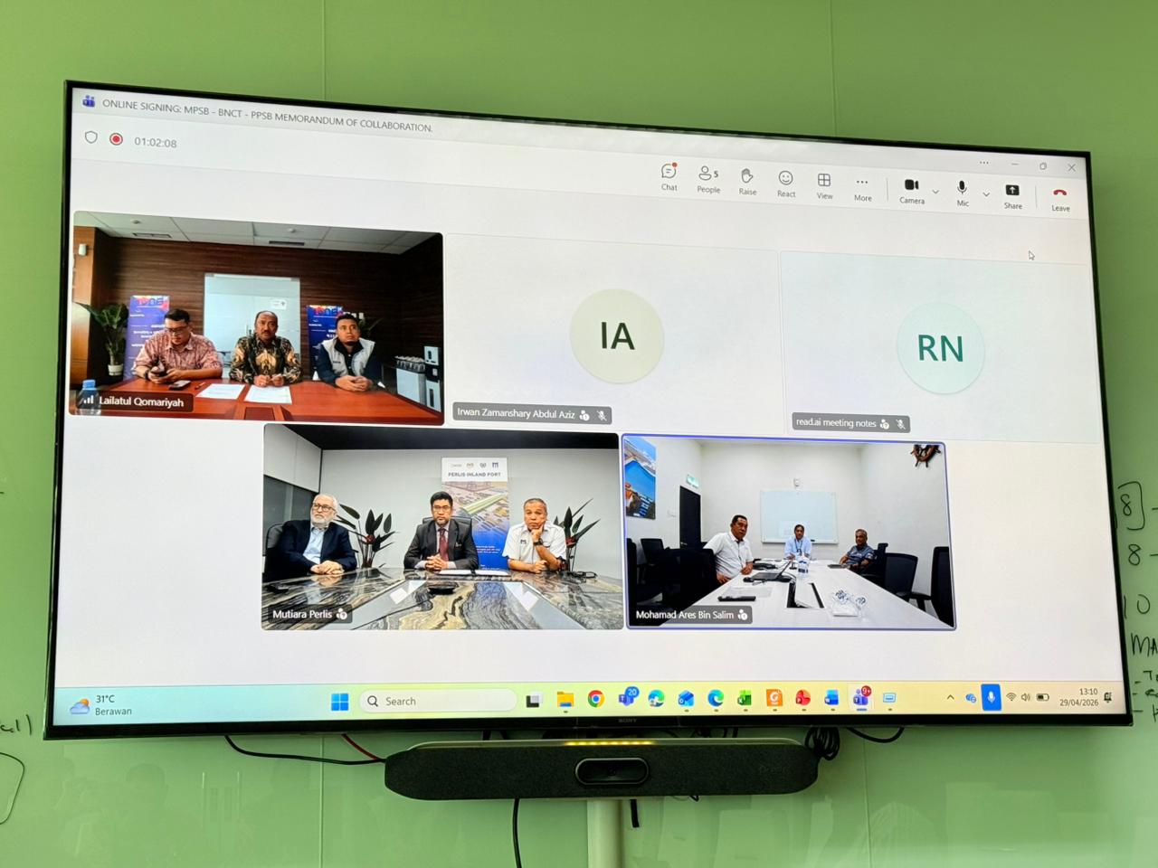 Baca Juga:PT Belawan New Container Terminal (BNCT) bersama Mutiara Perlis Sdn. Bhd. (MPSB) dan Penang Port Sdn. Bhd. (PPSB) secara resmi menandatangani Memorandum of Collaboration (MoC) dalam seremoni yang dilaksanakan secara online dan serentak pada 29 April 2026, sebagai langkah strategis dalam pengembangan koridor perdagangan regional yang menghubungkan Sumatra dengan China, Thailand, dan Cambodia.