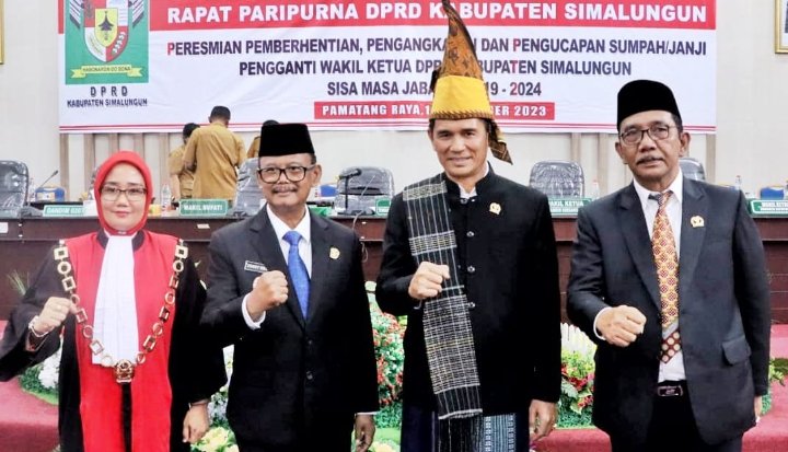Bupati Simalungun diwakili Wakil Bupati H Zonny Waldi menghadiri rapat paripurna DPRD Simalungun dalam rangka peresmian pemberhentian, pengangkatan dan pengucapan sumpah/janji Pengganti Antar Waktu (PAW) wakil ketua DPRD Simalungun sisa mas jabatan 2019-2024.