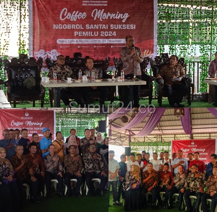 Coffee Morning yang mengusung tema Ngobrol Santai Suksesi Pemilu 2024 yang dilaksanakan KPU Padangsidimpuan ini dihadiri Awak Media (Cetak, Online), Peserta Pemilu (Partai Politik), perwakilan BEM dari berbagai Universitas.
